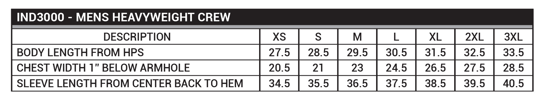 The IND3000 is the 10oz. Crew Neck companion to our original sweatshirt and best seller, the IND4000. We use premium ring-spun cotton 3-end fleece to achieve a smooth and stable fabric surface for printing. This premium heavyweight garment has a generous fit with 1x1 ribbing at cuffs and waistband.
